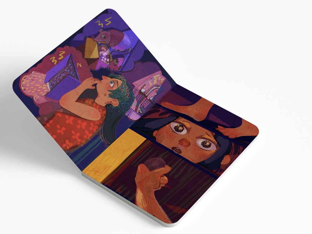 This experimental picture book tells the story of an absent father from a child’s perspective. One night, a little girl—unaccustomed to her scholar father’s presence—hears someone cooking in the kitchen and is overwhelmed by fear, imagining ghosts or other strange intruders. The narrative unfolds through her vivid inner world, eventually confronting the emotional distance between them. This work explores themes of absence, imagination, and the fragile threads of parent-child relationships.